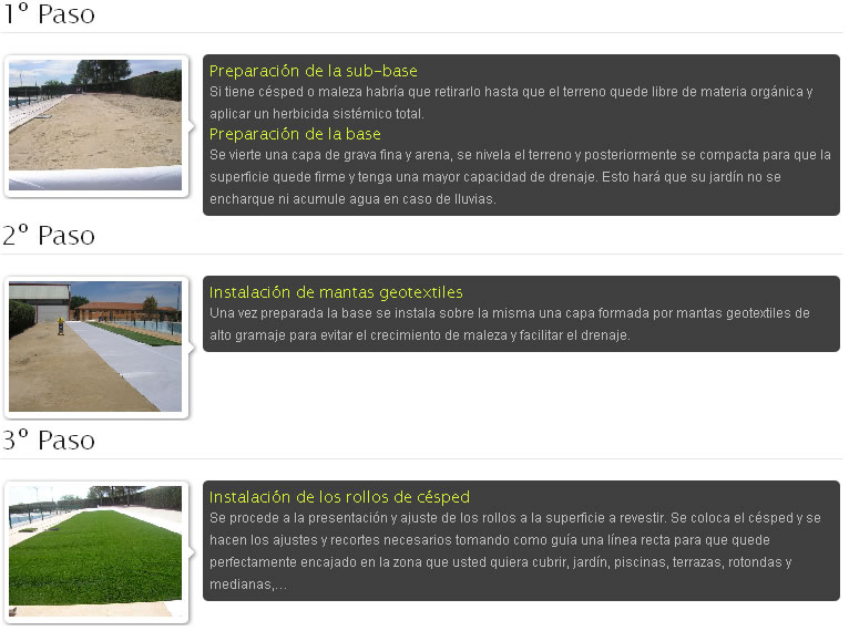 Es un producto que se puede instalar en cualquier superficie: tierra, baldosa, asfalto, hormigón… con un aspecto verde intenso todo el año, sin calvas, malas hierbas, etc, además es respetuoso con el medio ambiente y con un gran ahorro en el consumo de agua al no tener que regar de manera frecuente.